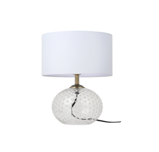 Luminária de mesa, vidro transparente, tecido branco 28X45cm